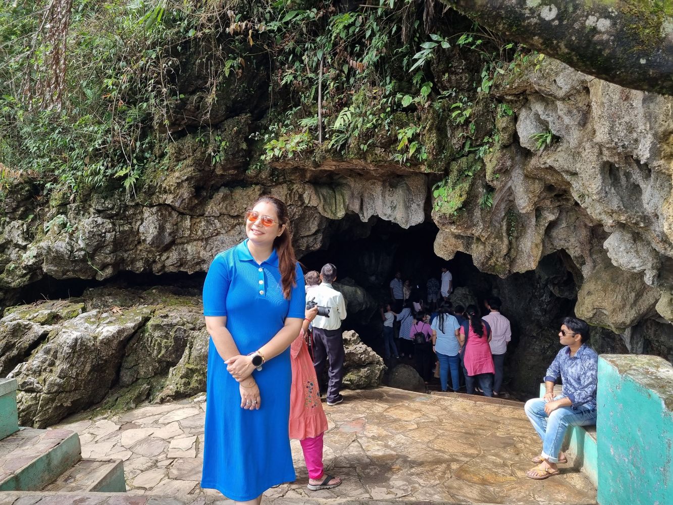 falls from a height of 315 metres (1,033 ft) and has an average width of 70 metres (230 ft) and it is one of the tallest waterfalls in India. After visiting the falls we headed to the Mawsmai caves.Mawsmai Cave is located at a short distance from Sohra and is an easy attraction to access and explore. There are some places inside the cave where you will need to squeeze around and crawl – and this adds to the experience of cave exploration. The Mawsmai cave route that is accessible to tourists is not very long and is very safe so you do not want to miss out on this unique opportunity. The cave is also famous for its fossils, some which you can spot if you spend some time peering at the walls and formations inside. After a almost one of hour of trekking,we finally could manage to squeeze ourselves out of the exit route of the cave.