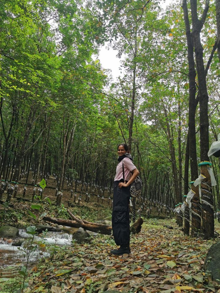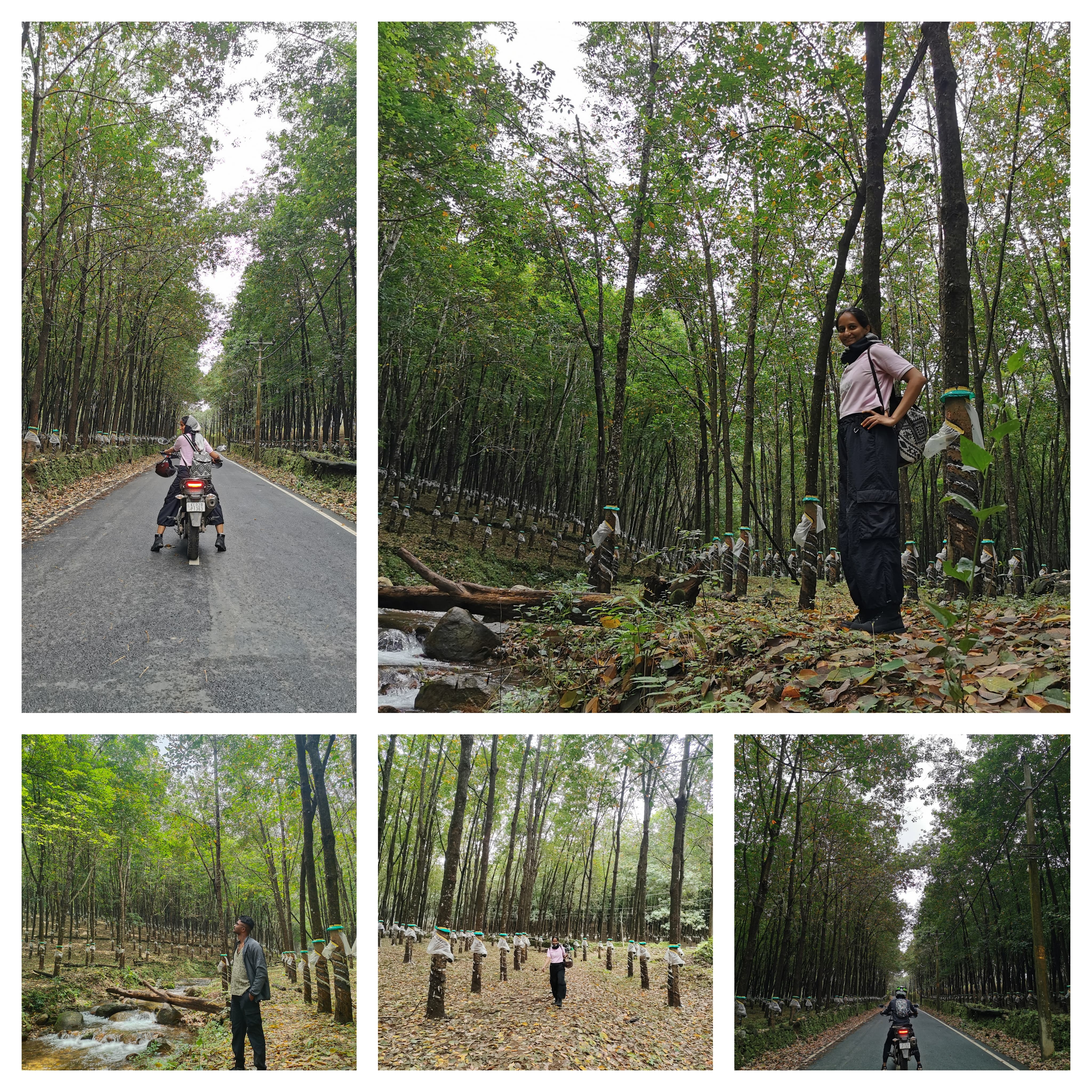 The verdant scenery, characterized by sky-reaching rubber plantations lining the pristine, unblemished black tar road, was mesmerizing. Small streams meandered alongside the road, enhancing the idyllic setting. Had we been artists, we could have easily spent an entire day capturing this beauty on canvas.