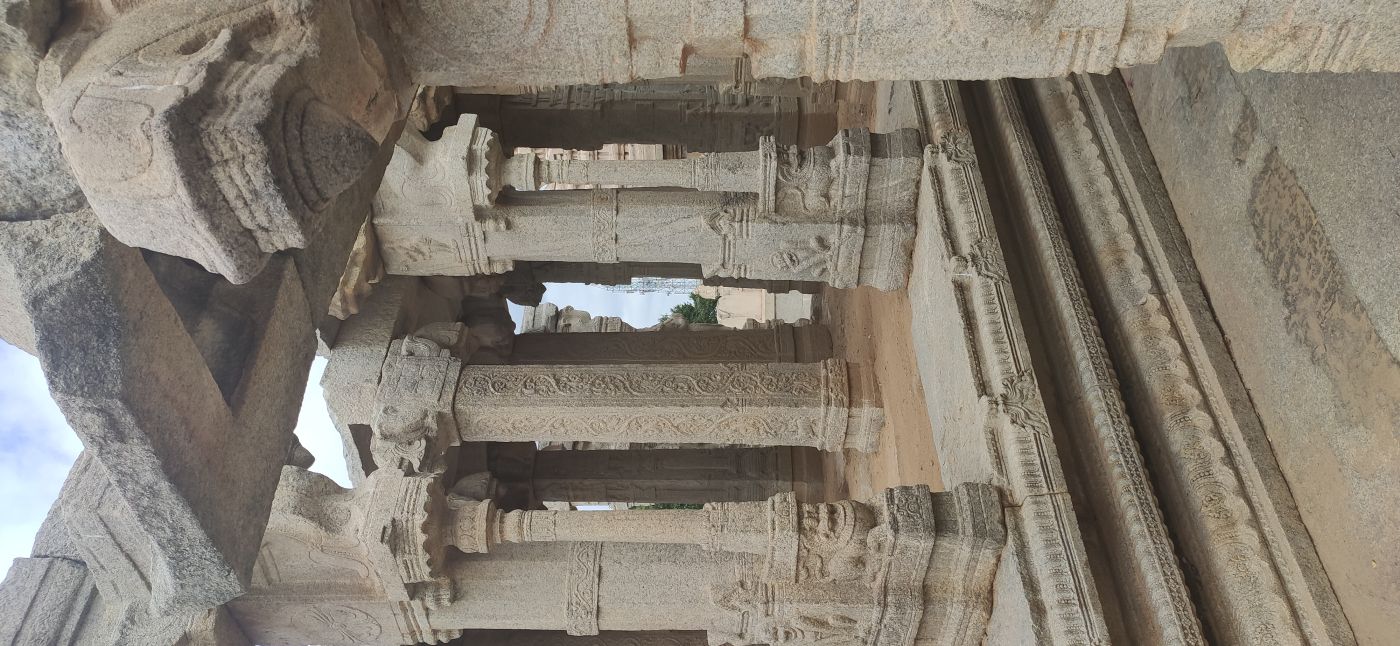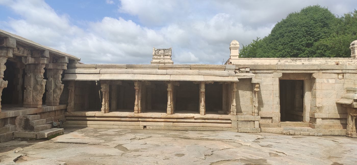 Lepakshi is culturally and archaeologically significant as it is the location of shrines dedicated to Shiva, Vishnu and Virabhadra which were built during the Vijayanagara Empire period (1336–1646). The temples are the location of mural paintings of the Vijayanagara kings and Telugu inscriptions. Near the temple complex is a large granite Nandi bull. On a hillock known as Kurma Saila, "tortoise shaped hill", are other temples to Papanatheswara, Raghunatha, Srirama, and Durga. Lepakshi is also famous for puppet show based on Hindu mythology. There is also a three-headed bull with single body carved on the pillar of main entrance pillar
