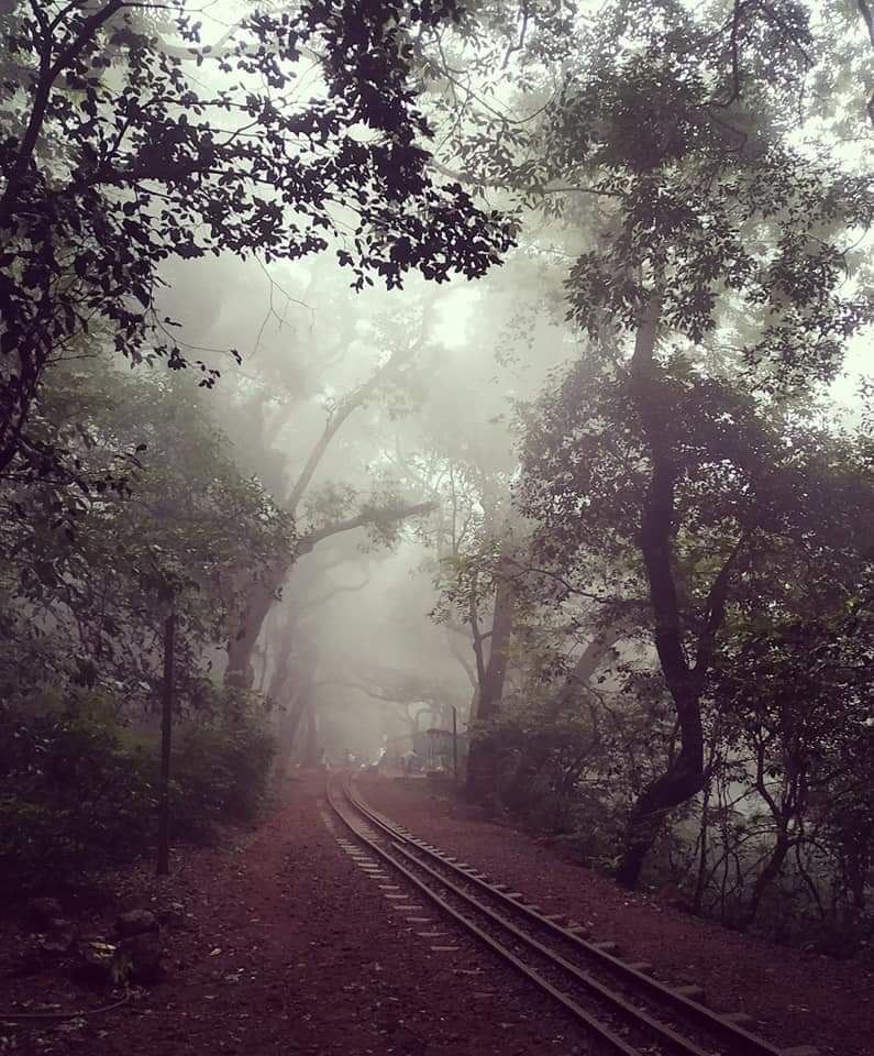 Matheran is a small hill station in the Sahyadri range near Mumbai with lush of greenery during monsoon. There is a toy train service operated from Neral Junction to Matheran except rainy season. So the best way to visit there by foot from Dasturi station. It is a 30 minutes walk through the rain and along the railway track.