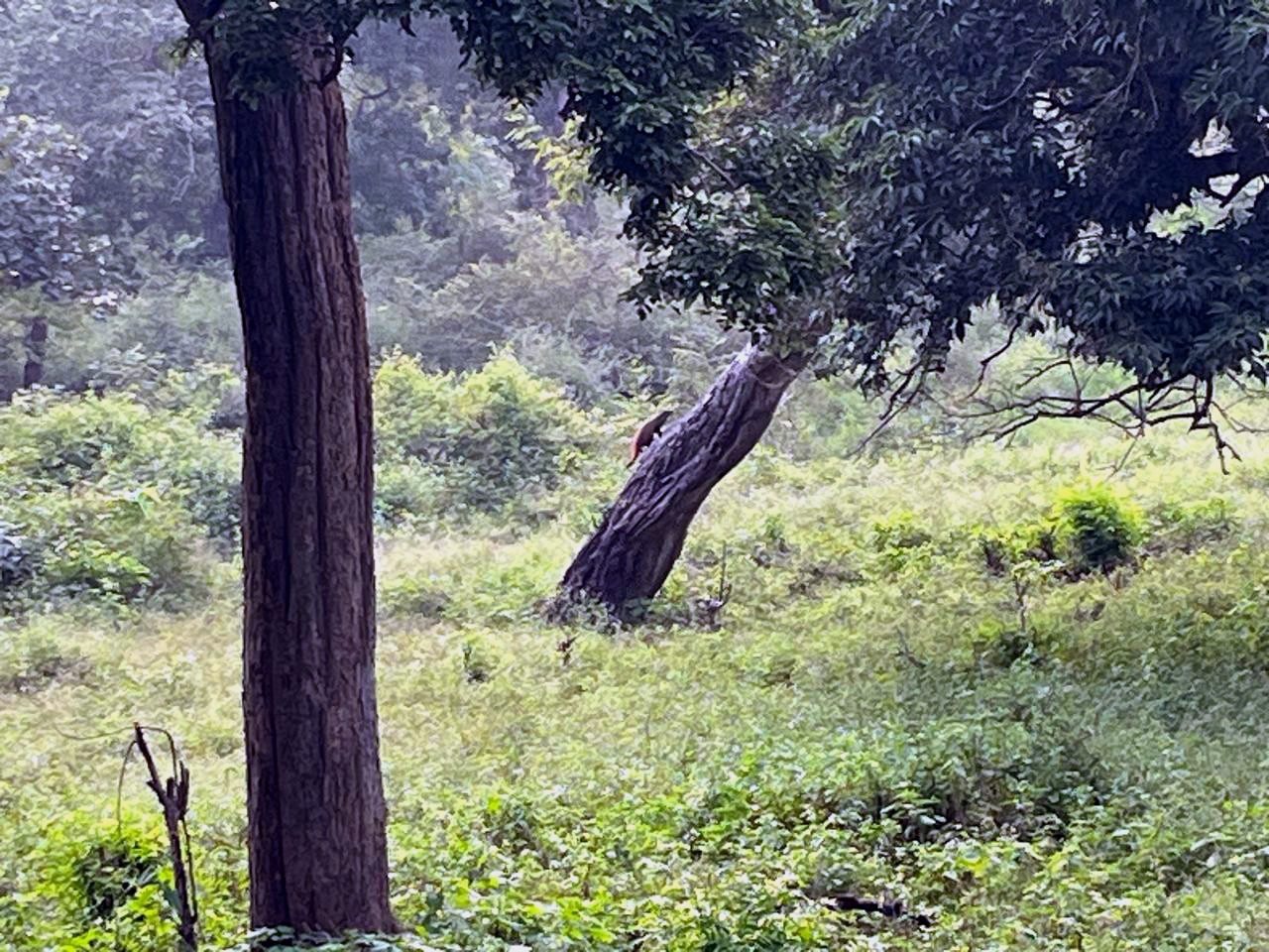 Our first wildlife sighting included two species of deer — the Sambar deer and the spotted deer. As we ventured deeper into the forest, we were fortunate to spot two endangered creatures: the Serpent Eagle and the Indian Giant Squirrel.