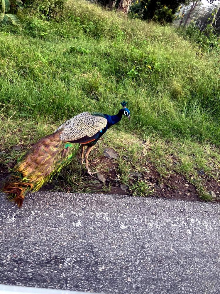 As we neared the safari location, traffic slowed us down, and we began to worry. I tried to call the safari office, but no one answered. We finally reached around 3:40 PM, a bit tense about possibly missing the safari. We finally reached around 3:40 PM. On the way to the safari point, we saw a peacock displaying its tail feathers—a beautiful sight, but as we were anxious about missing the safari ride, we didn’t stop to admire it. Once we showed our ticket at the counter, the jeep arrived, and we felt a huge sense of relief knowing we hadn't missed the opportunity to experience the magnificent jungle of Mudumalai.
