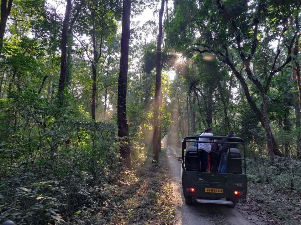 We started our journey early in the morning and stopped for breakfast at a small restaurant in a suburban town in the northern part of West Bengal. The food was fresh, and we enjoyed some delicious sweets made from pure cow’s milk. However, we accidentally took the wrong road, which delayed us by about 1hr, leading us near the Buxa picnic spot. On our left, we could see the picturesque hills of Bhutan, while lush tea gardens stretched out on our right. Everyone was captivated by the scenic beauty, but I was too anxious about being late for the safari to fully appreciate it.